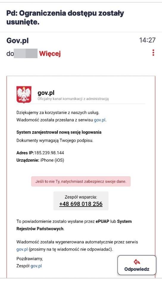 Ostrzeżenie! Uwaga na fałszywe e-maile „GOV.PL”. Nowy scenariusz oszustwa