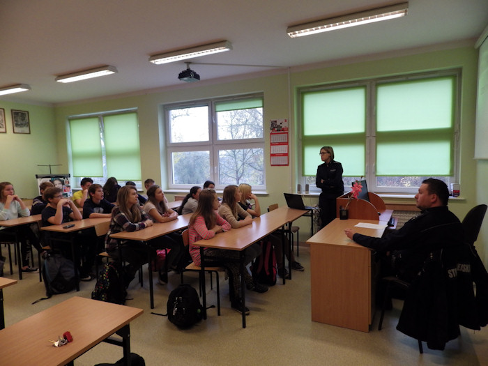 W węgorzyńskim gimnazjum odbyło się spotkanie policjantki i strażnika miejskiego z uczniami klas I. Tematem przewodnim tego spotkania była odpowiedzialność karna osób nieletnich.