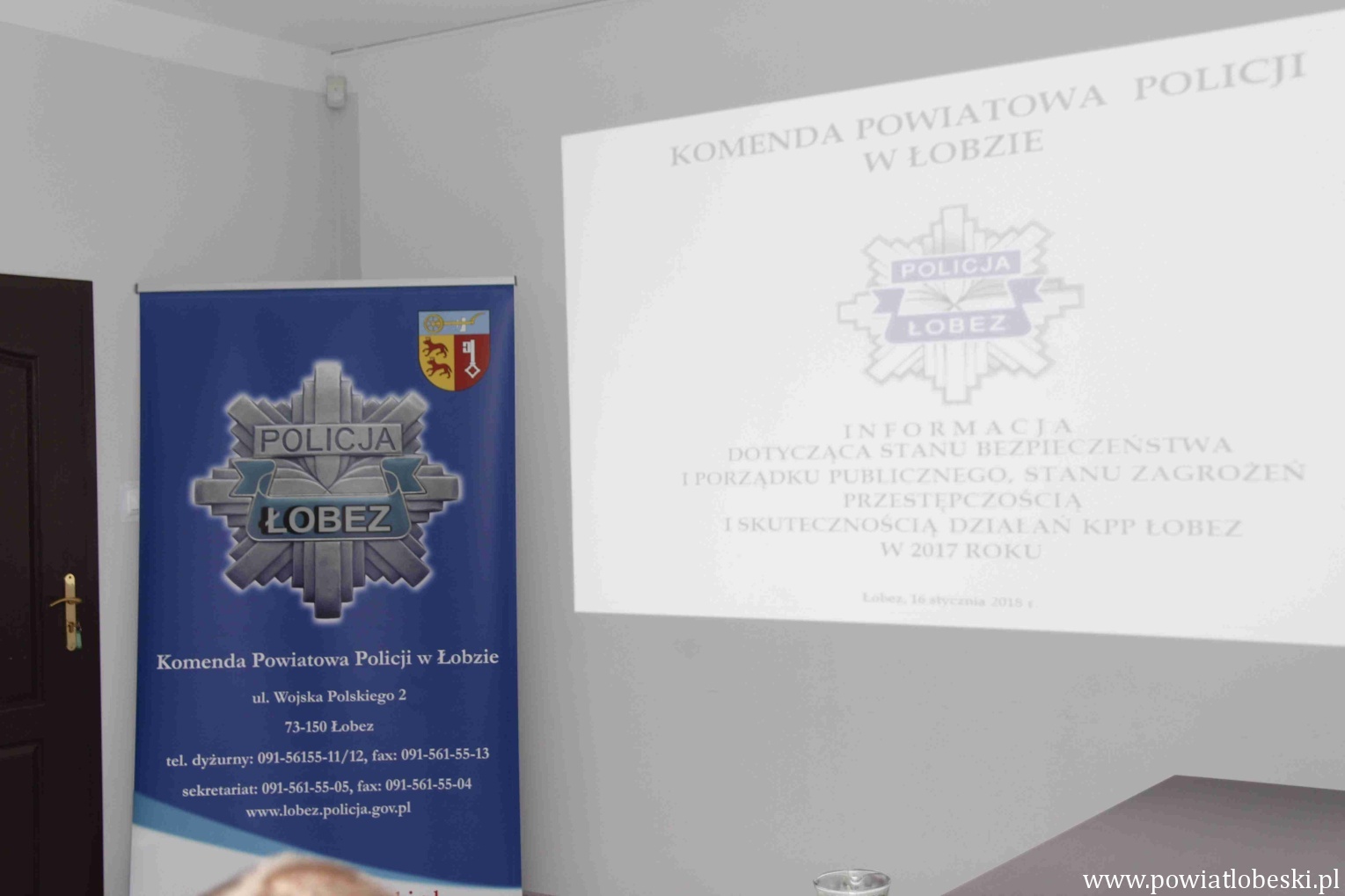 Komendant Powiatowy Policji w Łobzie – kom. Zbigniew Dankowski powitał zaproszonych gości. Omówił wyniki osiągnięte przez naszą jednostkę w roku 2017 oraz omówił stan bezpieczeństwa na terenie powiatu.