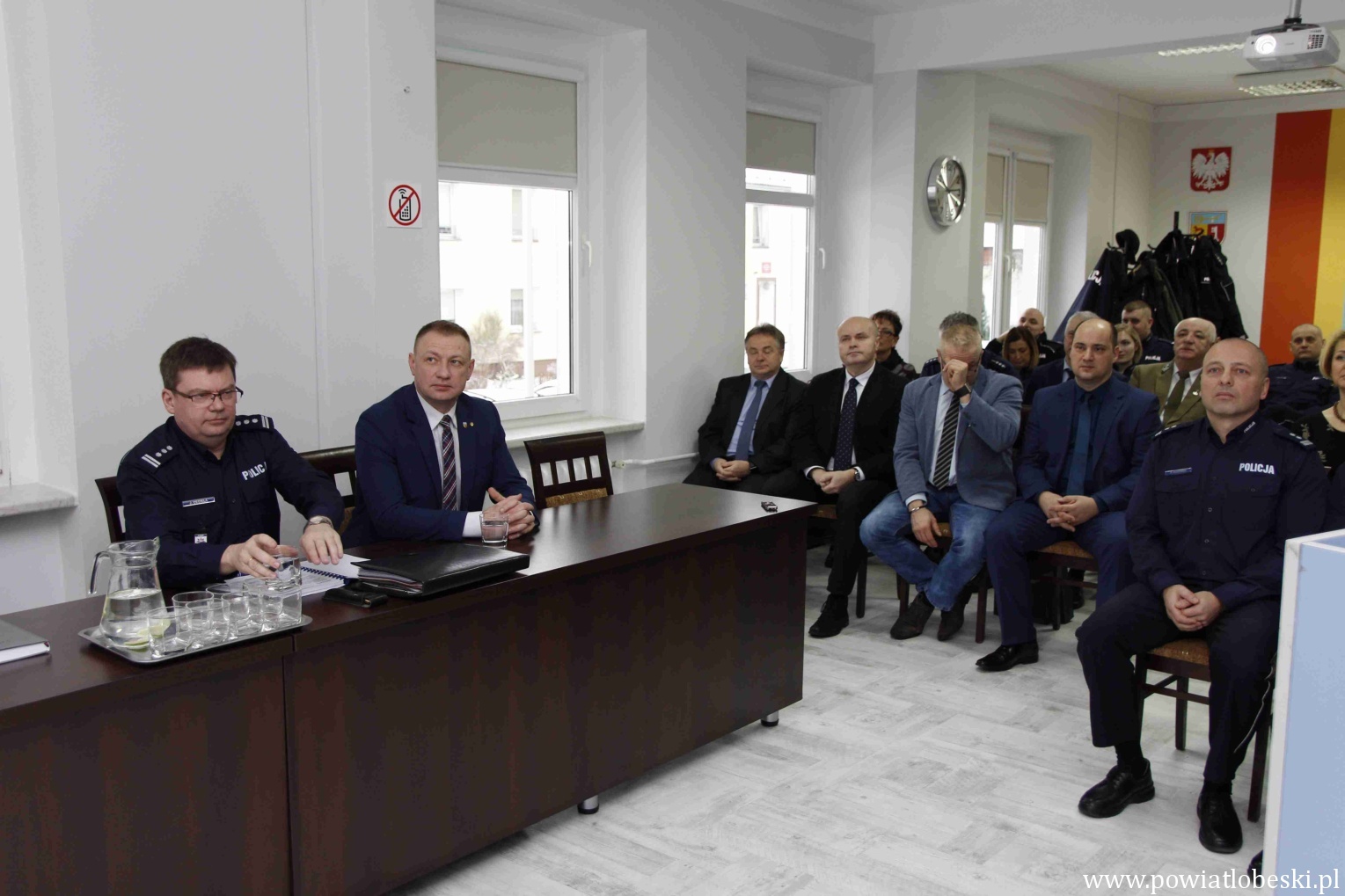 Wczoraj w sali konferencyjnej Starostwa Powiatowego w Łobzie odbyła się odprawa podsumowująca osiągnięte przez funkcjonariuszy naszej jednostki wyniki w roku 201. W odprawie udział wzięli: Komendant Wojewódzki Policji w Szczecinie – insp. Jacek Cegieła, Starosta Powiatu Łobeskiego – Paweł Marek, Burmistrz Łobza – Piotr Ćwikła, Burmistrz Gminy Węgorzyno – Monika Kuźmińska, Burmistrz Gminy Resko – Arkadiusz Czerwiński, Wójt Radowa Małego – Wiesław Lorent, Burmistrz Gminy Dobra - Piotr Chebda, Przewodniczący Zarządu Wojewódzkiego Niezależnego Samorządnego Związku Zawodowego Policjantów województwa zachodniopomorskiego –Marian Boguszyński, a także policjantki, policjanci oraz pracownicy Komendy Powiatowej Policji w Łobzie.