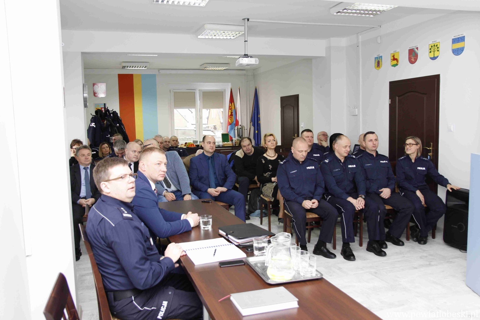 W dalszej części spotkania kom. Zbigniew Dankowski omówił działania profilaktyczne podejmowane na terenie naszego powiatu, a także przedstawił plany dotyczące termomodernizacji posterunków Policji.