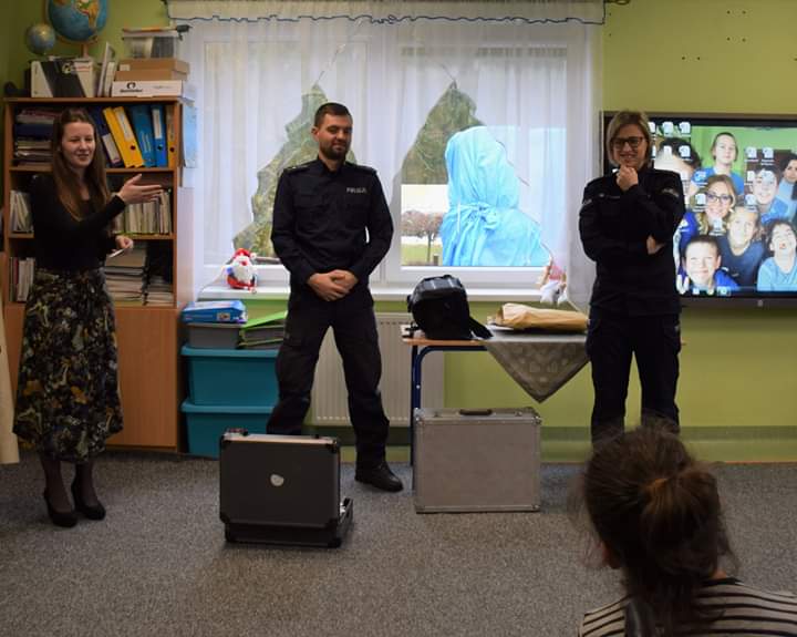 Policjant? Kto to taki? To temat spotkania z uczniami OREWu w Radowie Wielkim w ramach, którego technik kryminalistyki oraz policjantka zajmująca się profilaktyką opowiadali o zadaniach Policji i policjantów różnych pionów podczas codziennej służby.