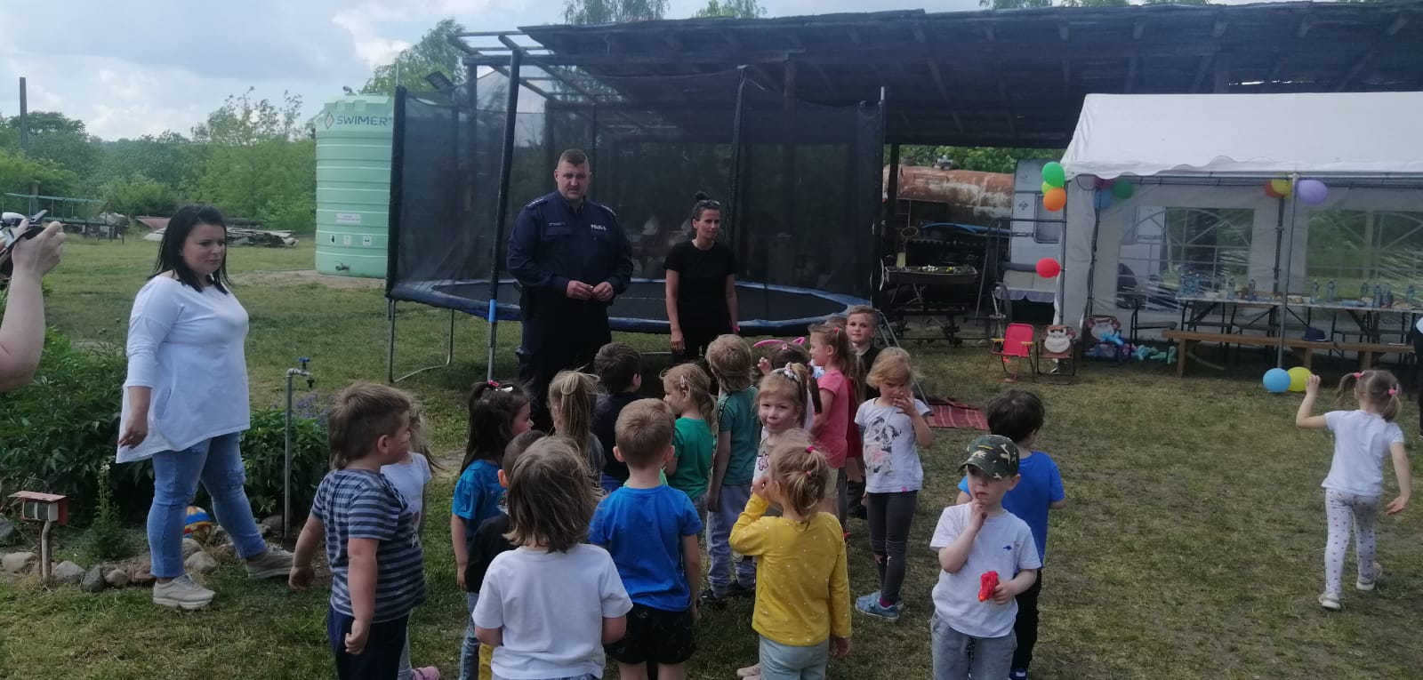 Z okazji Dnia Dziecka dzielnicowy spotkał się z przedszkolakami. W trakcie spotkania porozmawiał z dziećmi na temat bezpieczeństwa podczas wakacji. Dzielnicowy tłumaczył dzieciom na czym polegają bezpieczne zachowania w kontaktach z obcymi. Powiedział, co należy zrobić, gdyby dzieci na podwórku miały kontakt z psem, który jest bez właściciela i może im zagrażać. Dzieci słuchały uważnie tego, co mówi policjant. Nie obyło się jednak też bez zabawy oraz przeglądu wyposażenia policjanta, które zabiera do służby, Można też było skorzystać z okazji i wsiąść do radiowozu. Chętnych było niemało. W trakcie zabawy dzielnicowy opowiedział o zawodzie policjanta.