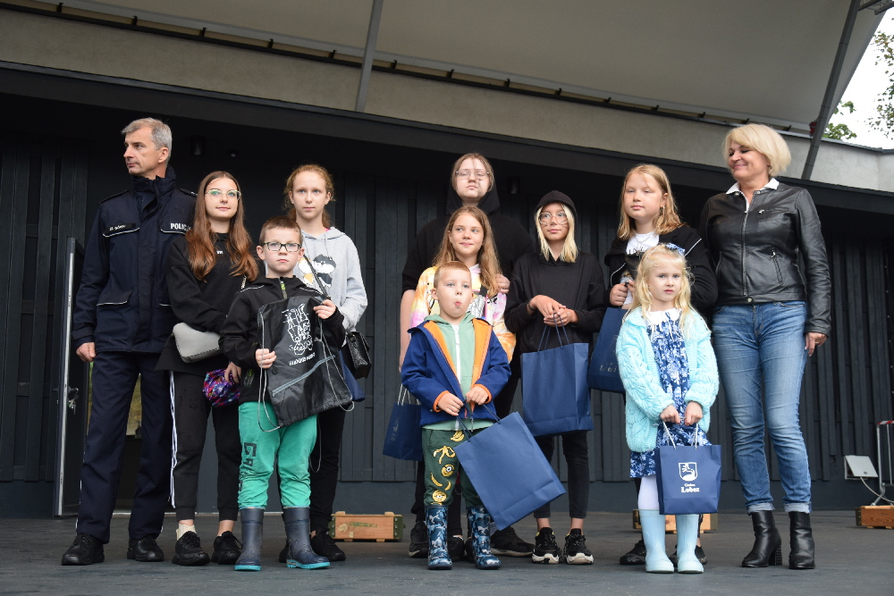 Festyn rozpoczął się konkursem dla dzieci z wiedzy prewencyjnej. Pytania dotyczyły bezpieczeństwa podczas na drodze, na podwórku, w szkole oraz w kontaktach z nieznajomymi ludźmi i obcymi psami. Celem konkursu było przypomnienie dzieciom, jak zachowywać się , by być bezpiecznym. Dzieci wykazały się dużą wiedzą dotyczącą wspomnianych tematów. Sporym zainteresowaniem cieszył się także konkurs plastyczny. Wiele radości sprawiły dzieciom nagrody za udział w konkursach.