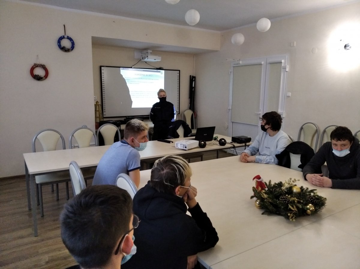 W dniu 15 grudnia 2021 roku policjantka z Komendy Powiatowej Policji w Łobzie po raz kolejny spotkała się z młodzieżą z łobeskiego Ośrodka Szkolenia i Wychowania.