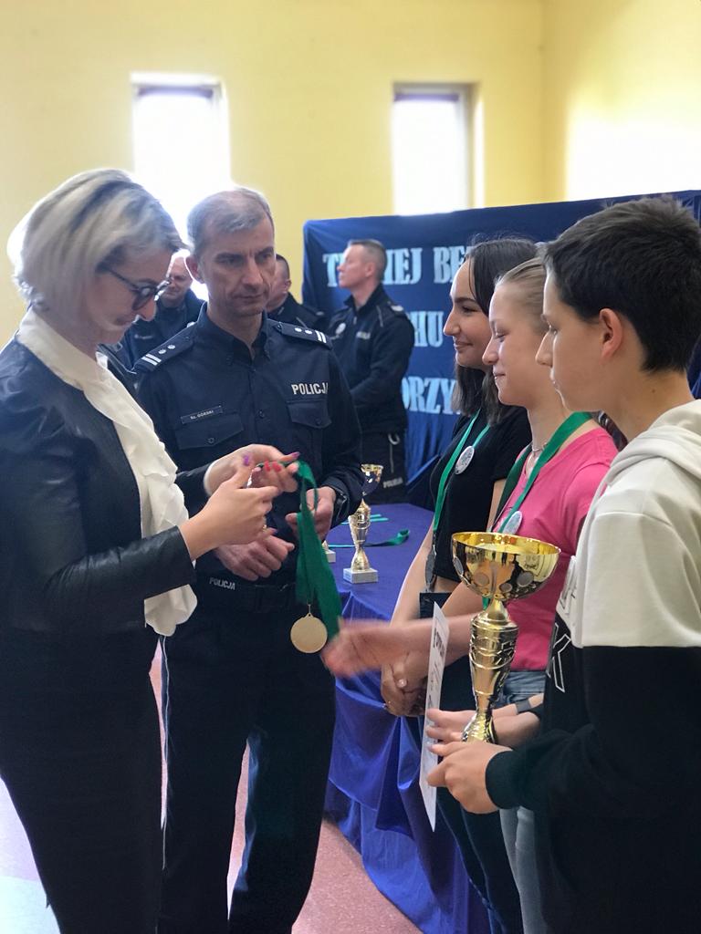 Laureaci konkursu, którzy reprezentowali szkoły z Łobza oraz z Węgorzyna otrzymali nagrody rzeczowe, które zostały wręczone przez Starostę Łobeskiego, Burmistrza Węgorzyna oraz I Zast ępcę Komendanta Powiatowego Policji w Łobzie.