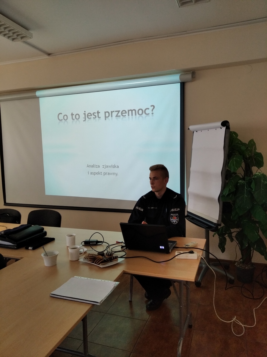 W trakcie spotkania wyjaśniono pojęcie przemocy oraz jakie są jej formy. Przybliżono w rozmowie zjawisko przemocy domowej i jak się przed nią chronić. Pouczono uczestników, że będąc świadkiem przemocy nie można pozostać biernym i należy ten fakt zgłosić w najbliżej jednostce Policji lub na nr alarmowy 112. Wytłumaczono, że w wielu przypadkach stosowania przemocy, a tym bardziej, gdy jej ofiarami są dzieci, może dojść do tragedii. Funkcjonariusze przy wykorzystaniu prezentacji medialnej pokazali cykl przemocy. Podczas rozmowy wskazano , jakie są środki prawne, które chronią ofiary przemocy oraz konsekwencje dla sprawców.
