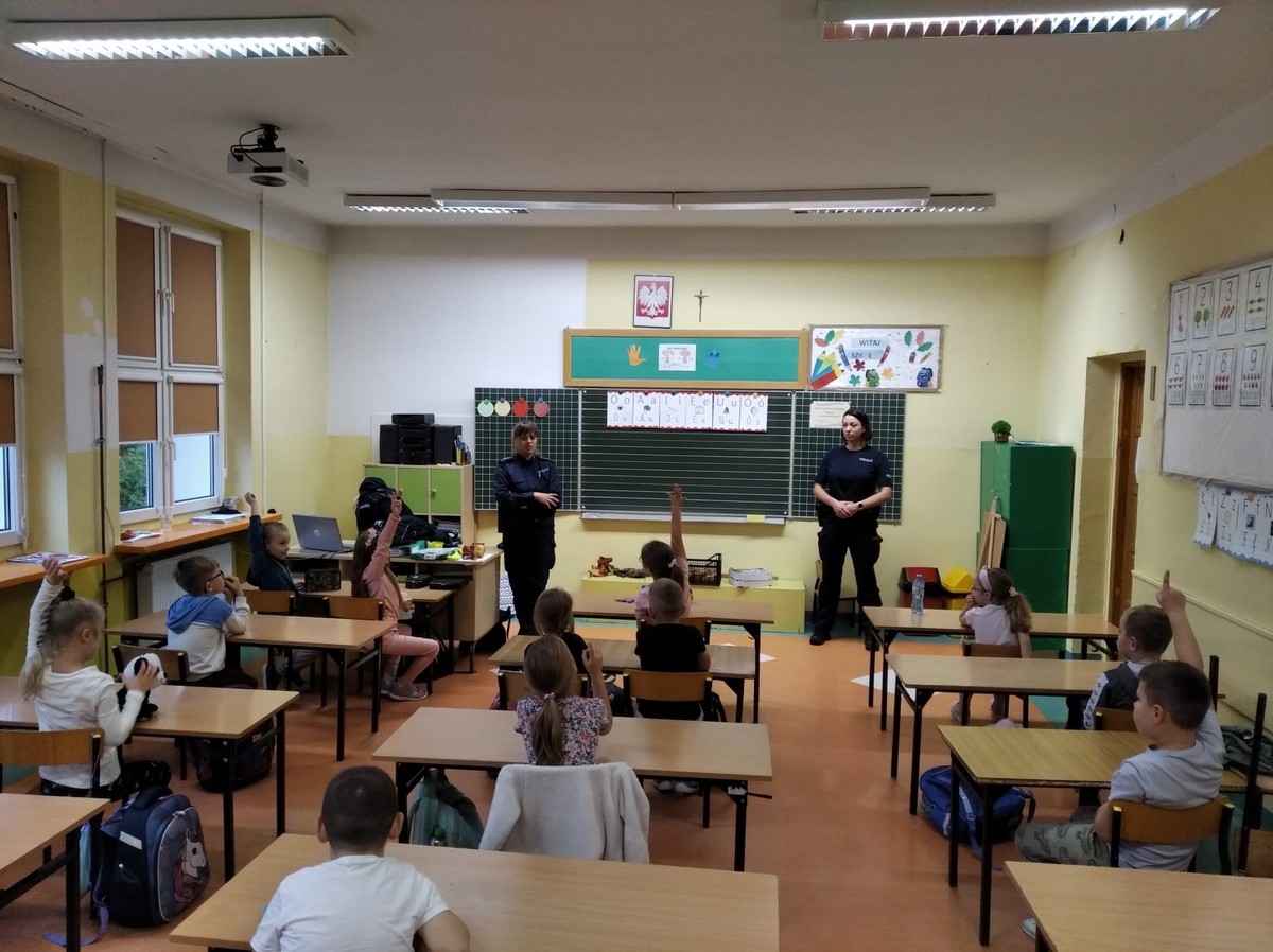 Uczniowie wykazali się dużą wiedzą w tematyce bezpieczeństwa i z dużym zaangażowaniem uczestniczyli w zajęciach.