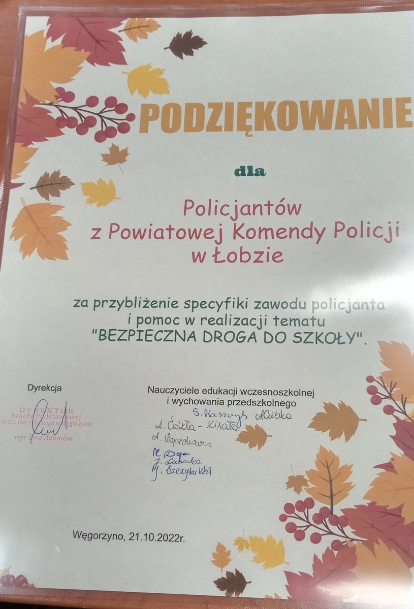 W ramach podziękowania funkcjonariusze otrzymali piękne dyplomy.