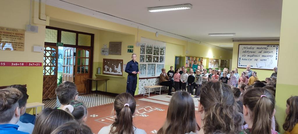 W trakcie spotkań z uczniami przypomniano o zasadach, których należy przestrzegać podczas zabaw w domu, jak również na świeżym powietrzu. Omówiono jak bezpiecznie spędzić ferie w domu, jak poruszać się we właściwy sposób po drogach, jak istotnym aspektem są elementy odblaskowe noszone na wierzchnich ubraniach oraz na co należy uważać w trakcie zabaw na śniegu. Poruszona została również tematyka dot. zagrożeń związanych z wchodzeniem na zamarznięte akweny wodne.