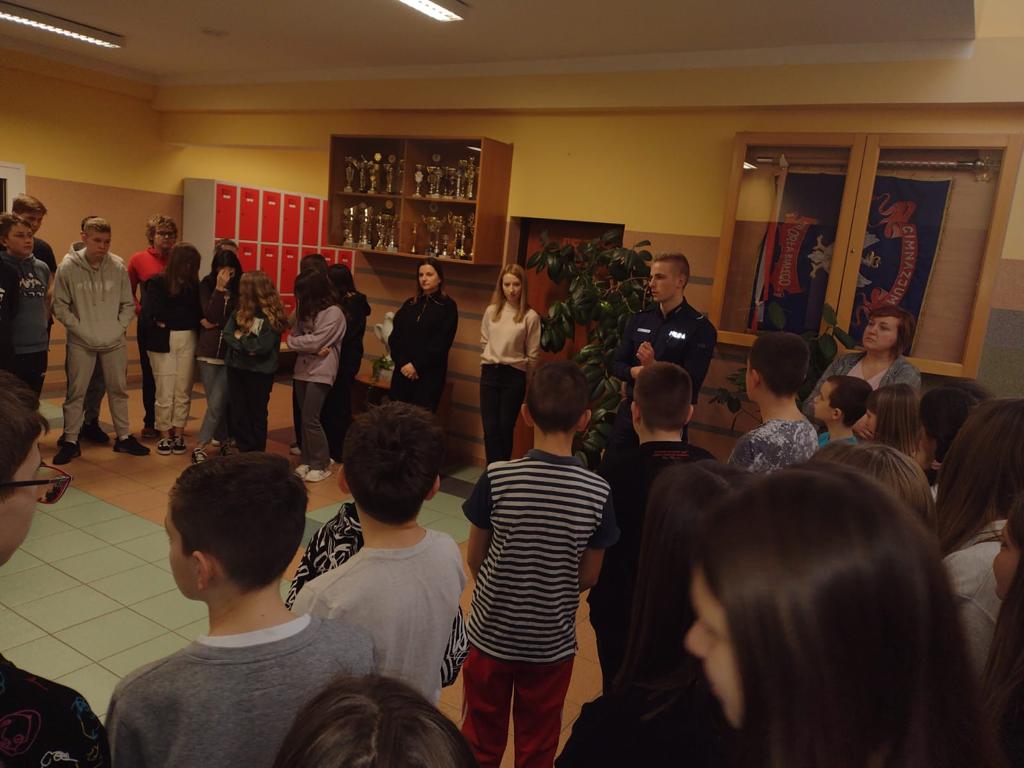 Na zakończenie spotkania w celu zwrócenia uwagi na zasady bezpieczeństwa na górskich stokach, zostały wręczone na ręce wychowawców ulotki oraz plakaty promujące konkurs plastyczno – filmowy „Kręci mnie bezpieczeństwo na stoku”, którego regulamin oraz zgłoszenie znajduje się na stronie: www.policja.pl/bezpieczenstwo-na-stoku. Ponadto wręczone zostały elementy odblaskowe, które uczniowie będą mogli wykorzystać w trakcie bezpiecznego wypoczynku oraz życiu codziennym.