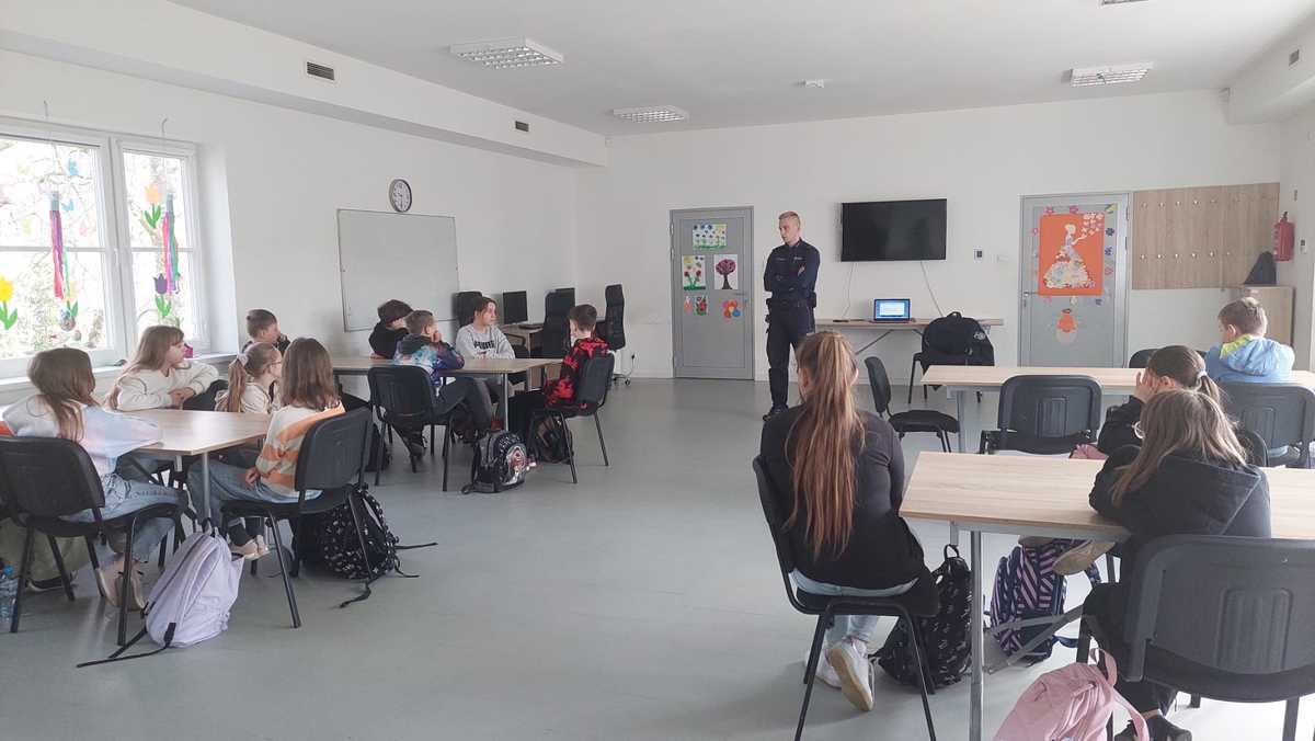 Funkcjonariusz Komendy Powiatowej Policji w Łobzie zajmujący się profilaktyką- sierż. Szymon Martula, na zaproszenie Dyrekcji Szkoły Podstawowej im. Ireny Sendlerowej w Starogardzie, spotkał się z uczniami aby opowiedzieć młodzieży o odpowiedzialności karnej nieletnich. Istotą zajęć było podniesienie świadomości uczestników na temat konsekwencji popełnianych czynów.