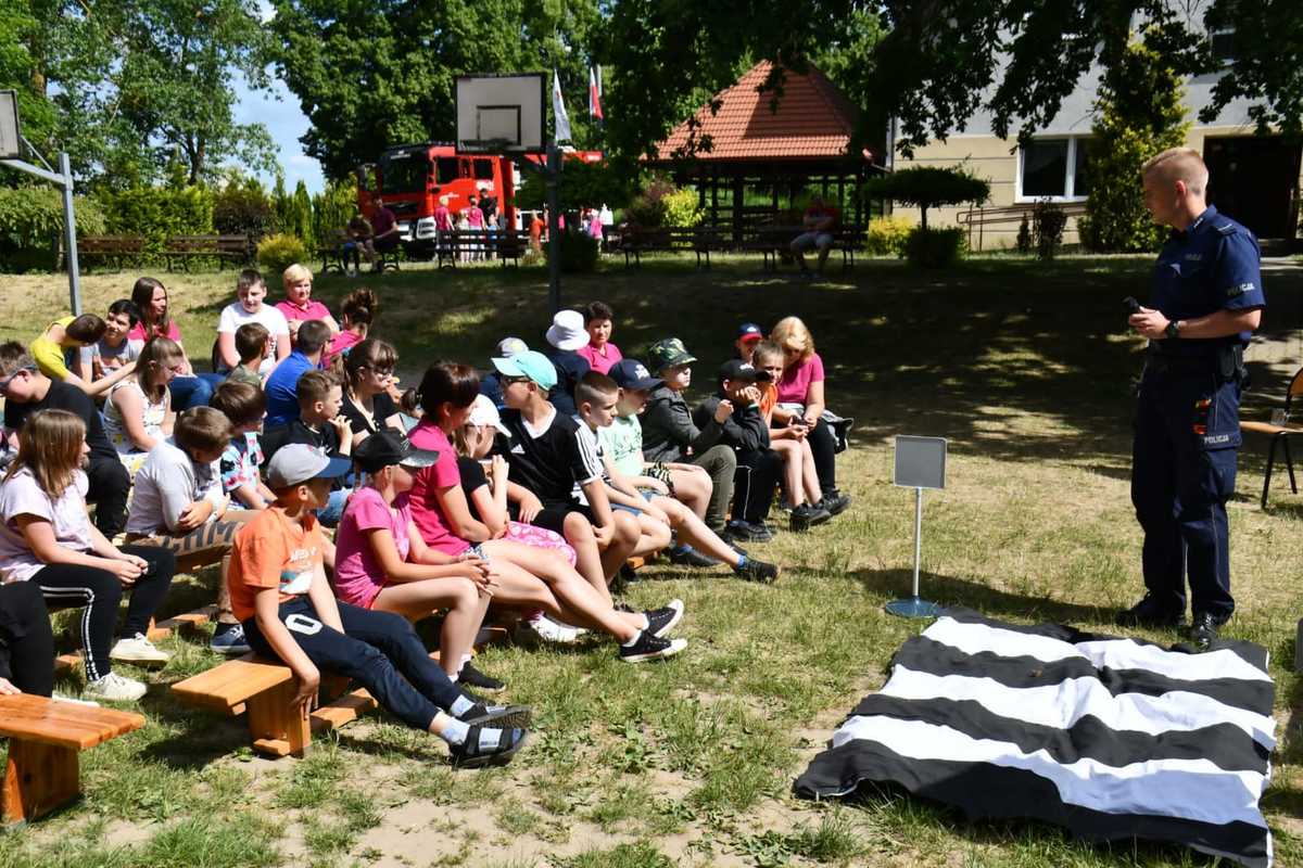 W dniu 13 czerwca 2023 r. funkcjonariusz zajmujący się profilaktyką przeprowadził zajęcia z uczniami i wychowankami Niepublicznej Szkoły Podstawowej nr 1 w Radowie Wilkiem, których tematyką było ich bezpieczeństwo w trakcie zbliżających się wakacji, a w szczególności bezpieczeństwa nad wodą.