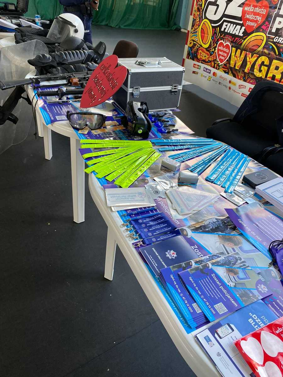 Funkcjonariusze Wydziału Prewencji i Ruchu Drogowego udzielili przed rozpoczęciem finału instruktażu dla wolontariuszy, aby czuli się oni tego dnia szczególnie bezpiecznie, a w razie wszelkiego niebezpieczeństwa, będą czuli się bezpiecznie. Policjanci przygotowali na stoisku wyposażenie policjanta do codziennej służby, a także ekwipunek, ktory stosuje się w trakcie zabezpieczeń meczy lub innych imprez masowych. Uczestnicy mogli przymierzyć sobie sprzęt, a także zapoznać się z bronią, która jest na wyposażeniu funckjonariuszy Policji. Ponadto na stoisku przygotowano dokumenty oraz ulotki przygotowane dla osób chętnych lub rozważających ubranie policyjnego munduru, policjanci odpowiedzili na pytania zainteresowanych na temat ścieżki zawodowej, uposażenia policjanta, a także jego etapy trzeba przejść, aby rozpoczać służbę w Policji. Dla najmłodszych zostały przygotowane również elementy odblaskowe oraz inne gadżety, które sprawią, że zapamietają tej dzień. Z okazji 32 Finału Wielkiej Orkiestry Świątecznej Pomocy, Komenda Powiatowa Policji w Łobzie wystawiła na licytację 3 vouchery na spędzenie 3 godzin z patrolem Ogniwa Ruchu Drogowego, które zostały wylicytowane na kwotę 1000 zł.