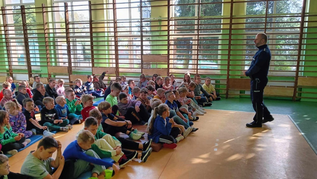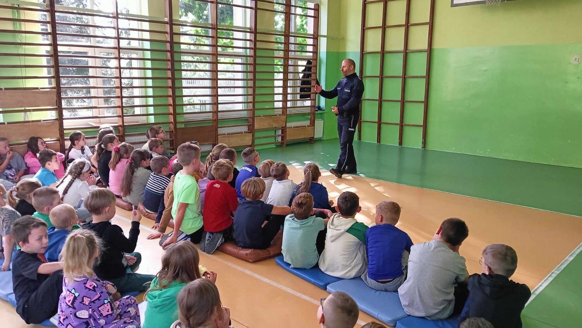 Spotkanie dzielnicowego z uczniami Szkoły Podstawowej w Dobrej