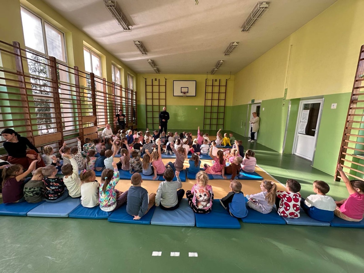 Dzielnicowy omówił podstawowe przepisy oraz znaki drogowe, które dotyczą niechronionych uczestników ruchu drogowego. W trakcie spotkania zostało przypomniane, aby zawsze wybierać bezpieczną i dobrze oświetloną drogę do szkoły, przechodzić w przez jezdnię tylko w miejscach do tego wyznaczonych oraz nie zapominać o elemencie odblaskowym przy swojej odzieży czy też plecaku. Przypomniane zostały róznież numery alarmowe, a także jak należy zachować się w kontaktach z nieznajomymi.