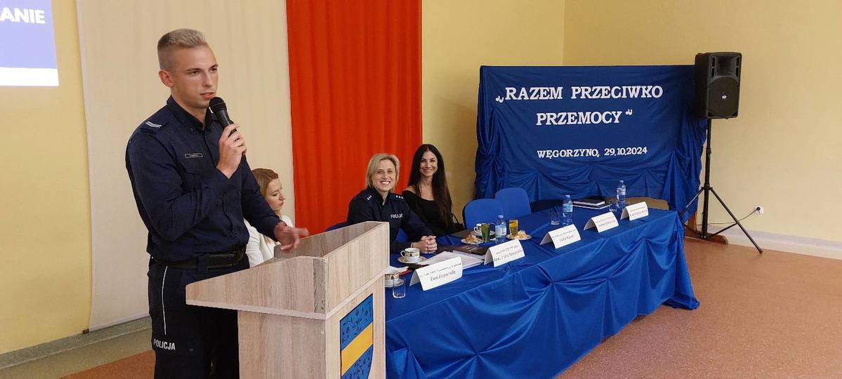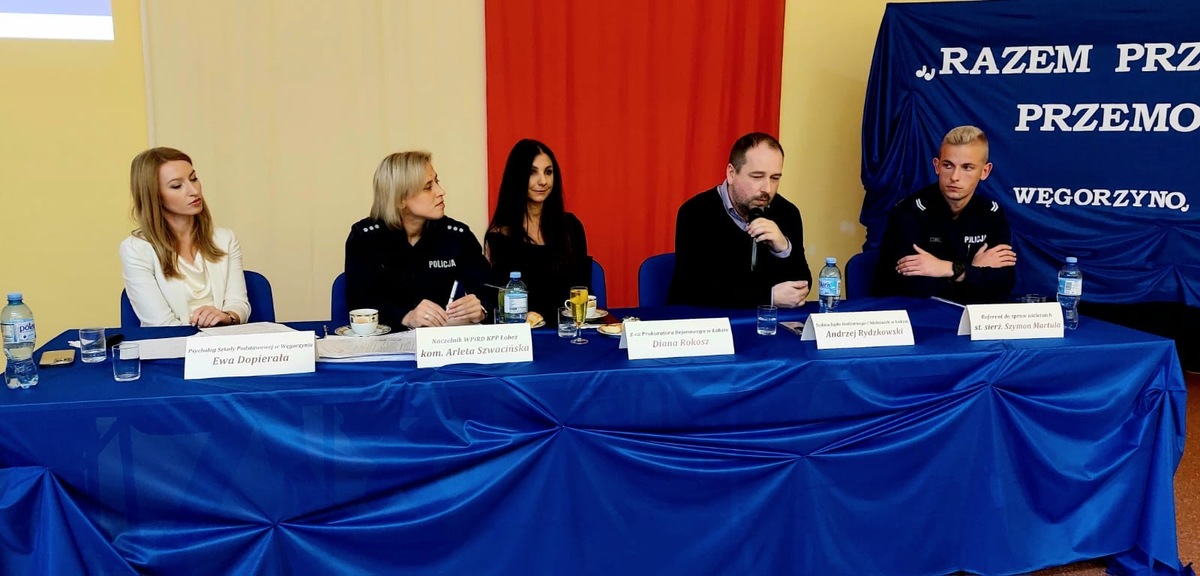 W dniu wczorajszym tj. 29 października br. o godzinie 10:00 w auli Szkoły Podstawowej w Węgorzynie odbyła się debata społeczna pn. „Razem Przeciwko Przemocy”. Wydarzenia miało na celu omówienie z uczestnikami budzących wątpliwości aspektów procedury „Niebieskie Karty”, procedury wydania policyjnych środków izolacyjnych, a także omówienia przestępstwa znęcania, problematyki przemocy rówieśniczej oraz związanej z nią odpowiedzialnością prawną osób nieletnich, jak również przybliżenie psychologicznych skutków u dzieci żyjących w rodzinach przemocowych.