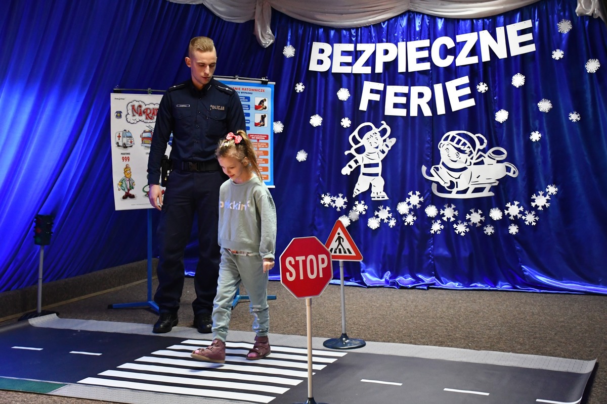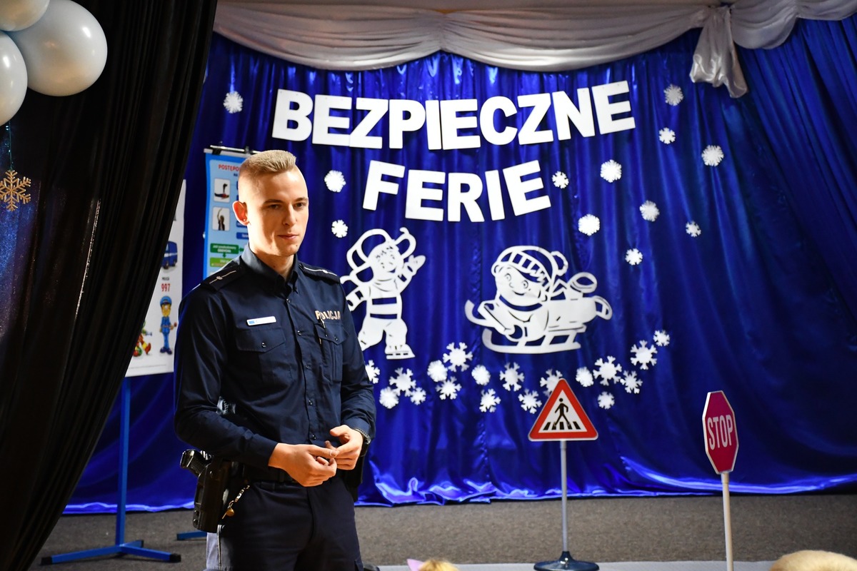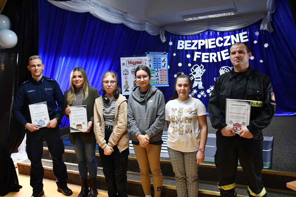 W trakcie spotkań mł. asp. Szymon Martula wspólnie z pracownikiem Powiatowej Stacji Sanitarno-Epidemiologicznej w Łobzie Martyną Kowalską oraz strażakiem Komendy Powiatowej Państwowej Straży Pożarnej w Łobzie-asp. Radosławem Dubaj, poinformowali uczestników o podstawowych zasadach ubioru w trakcie okresu zimowego, higieny osobistej oraz zdrowego żywienia. Mundurowi zwrócili uwagę dlaczego nie należy wchodzić na zamrznięte zbiorniki wodne, a także jak w bezpieczny sposób korzystać z sanek i nart. Z uczestnikami zostały omówione podstawowe przepisy ruchu drogowego, które jak się okazało były perfekcyjnie znane. Uczesnikom spotkań został przypomniany algorytm postępowania w kontaktach z nieznajomymi, a także jak należy wezwać pomoc korzystając z numeru alarmowego 112. Mundurowi zachęcali młodzież do noszenia elementów odblaskowych.