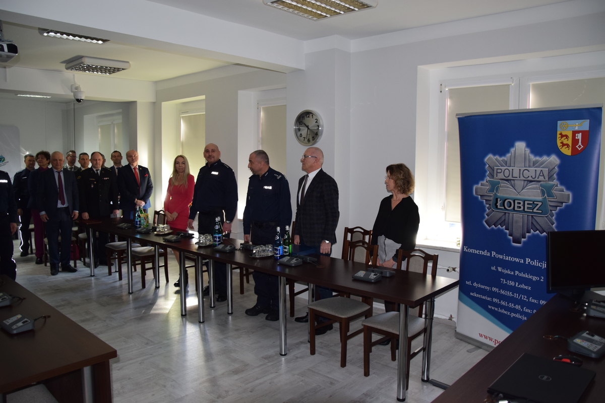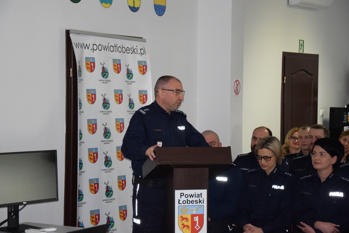 W trakcie wystąpienia nadkom. Jacek Czyżewski podziękował przedstawicielom wszystkich władz samorządowych za codzienną współpracę z Naszą jednostką. Zwrócił uwagę jak ważne jest ich wsparcie, także to finansowe. Dzięki otrzymanym funduszom Komenda Powiatowa Policji w Łobzie zaopatrzyła się m.in. o nowy radiowóz do służby dla pionu kryminalnego, nowego psa patrolowo-tropiącego, kasety służące do przeprowadzania badań pod kątem środków odurzających, urządzenia iBlow służące do przeprowadzania badań trzeźwości kierujących, a także elementy odlbaskowe służące do działań profilaktycznych. Komendant podziękował wszystkim uczestnikom odprawy za wspólny wysiłek na rzecz poprawy bezpieczeństwa mieszkańców powiatu łobeskiego, a także kierował słowa uznania za codzienną, profesjonalną i pełną zaangażowania służbę podległych policjantów.