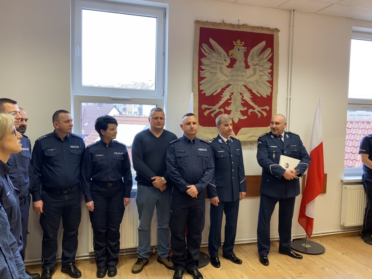 Podczas swojego przemówienia mł. insp. Szczepan Górski podziękował wszystkim funkcjonariuszom oraz pracownikom, z którymi miał okazję współpracować od 2018 roku w Komendzie Powiatowej Policji w Łobzie.