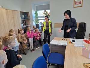 W ubiegły piątek Komisariat Policji w Resku odwiedziła grupa "Pszczółki" z Przedszkola Miejskiego w Resku. Była to idealna okazja do przedstawienia najmłodszym struktury komisariatu, a także przedstawienia wyposażenia wykorzystywanego przez funkcjonariuszy do codziennej służby. Nie zabrakło również kilku słów o bezpieczeństwie najmłodszych zarówno w przedszkolu jak i w czasie wolnym.