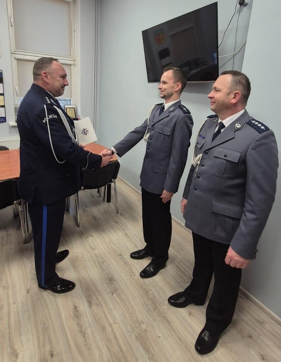 Komendanci pogratulowali awansowanemu funkcjonariuszowi, jednocześnie dziękując za profesjonalizm oraz zaangażowanie w codziennej służbie, a także złożyli życzenia dalszych sukcesów.
