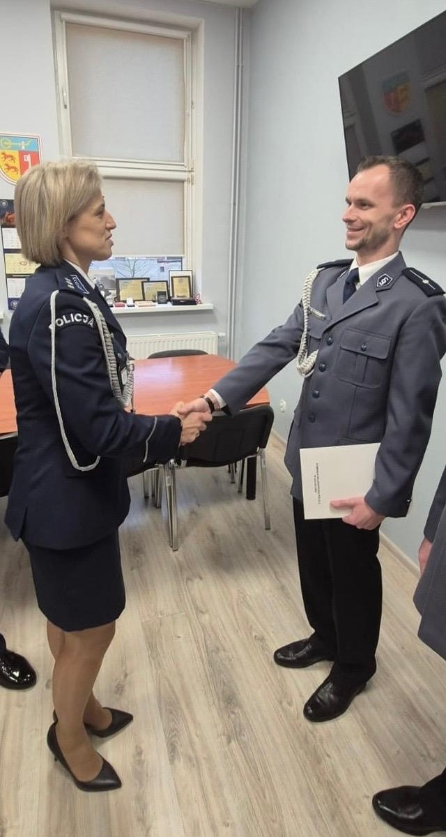 Komendant Wojewódzki Policji w Szczecinie nadinsp. Szymon Sędzik rozkazem personalnym mianował funkcjonariusza Posterunku Policji w Węgorzynie sierż. szt. Mateusza Starucha na stopień młodszego aspiranta Policji. Wczoraj w budynku Komendy Powiatowej Policji w Łobzie odbyło się uroczyste wręczenie aktu mianowania.