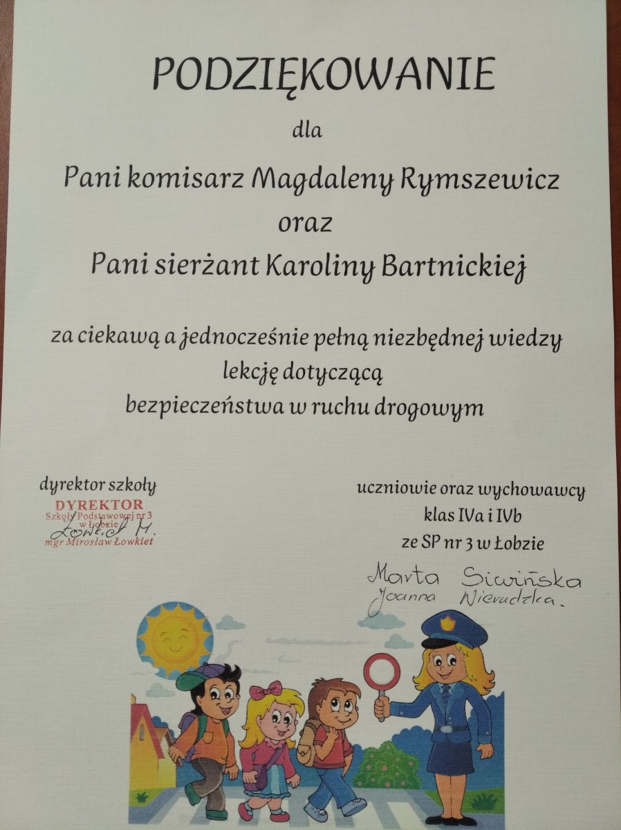 Podziękowania za zajecia profilaktyczne Powrót Drukuj Nauczyciele ze Szkoły Podstawowej nr 3 w Łobzie podziękowali za zajęcia profilaktyczne , które pozytywnie wpłyną na kształtowanie bezpiecznych postaw.